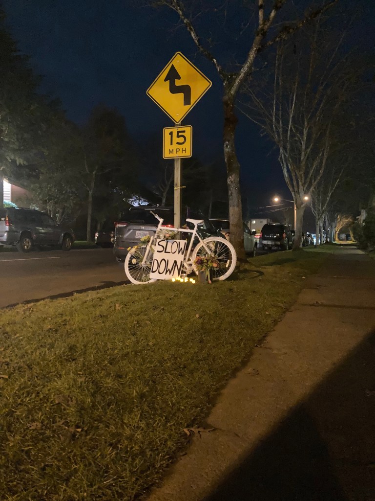 I cross Patterson on my bicycle to get to school almost every day. When I heard about Njue’s death, I didn’t know what to feel. Sadness, at the loss of someone I never even knew but had shared the bond of cycling. Fear, at the prospect of one day my vehicle of choice could end up in my death. Anger, at the officials and motoring public that turns a blind eye to cyclists. Wearyness, because only this August another UO cyclist had died on East 8th and Hilyard.